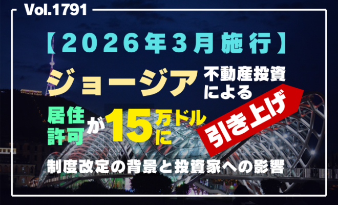 Vol.1791:【2026年3月施行】ジョージア不動産投資による居住許可が15万ドルに引き上げ|制度改定の背景と投資家への影響