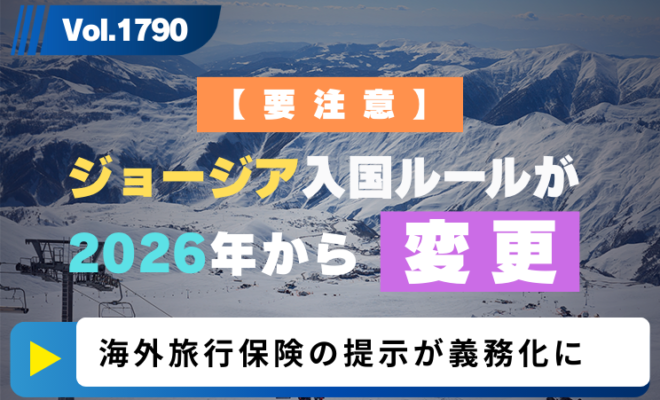 Vol.1790:【要注意】ジョージア入国ルールが2026年から変更|海外旅行保険の提示が義務化に