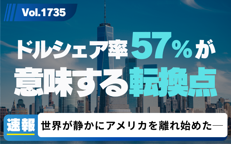 2005年は66.5%のドルシェア率が、2025年は57.74 % まで下落しており、この数字からも、世界中の中央銀行が『アメリカドルを売却し、他の通貨の資産に切り替えてきている』と言うことが分かります。