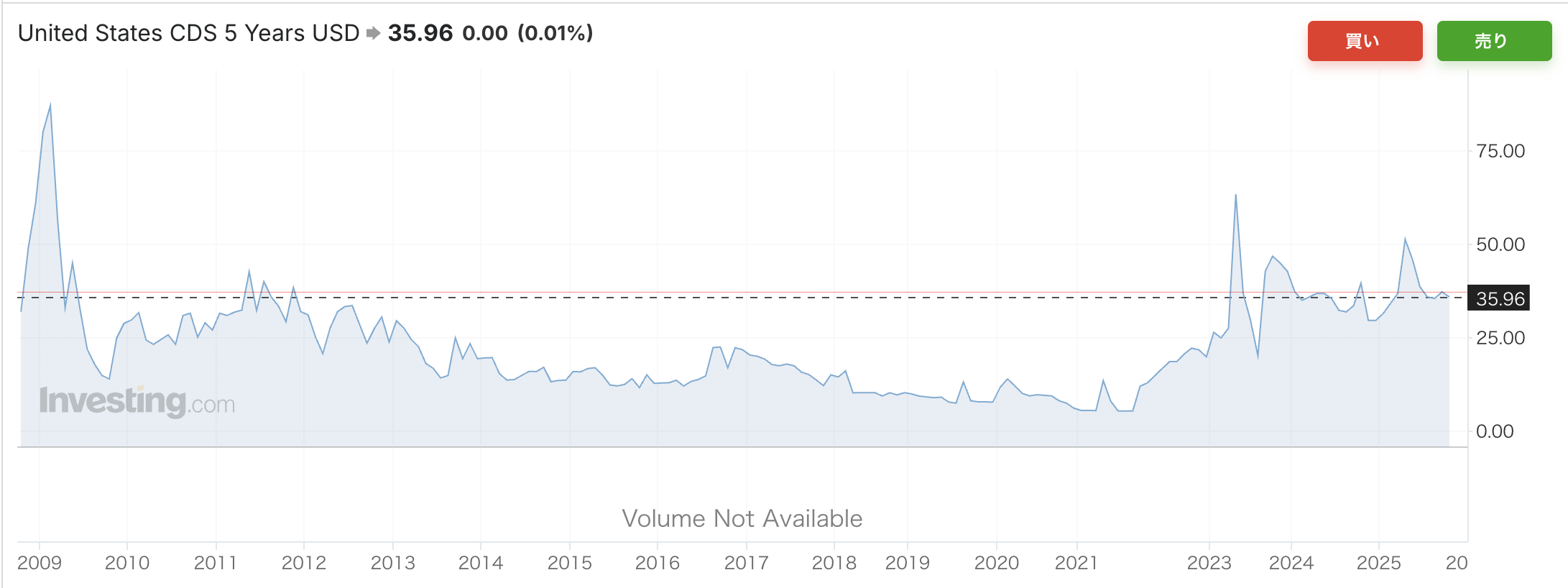 『2021年以降、一貫してアメリカ国債のCDSプレミアム(保険料)が上昇し続けている』とかです。