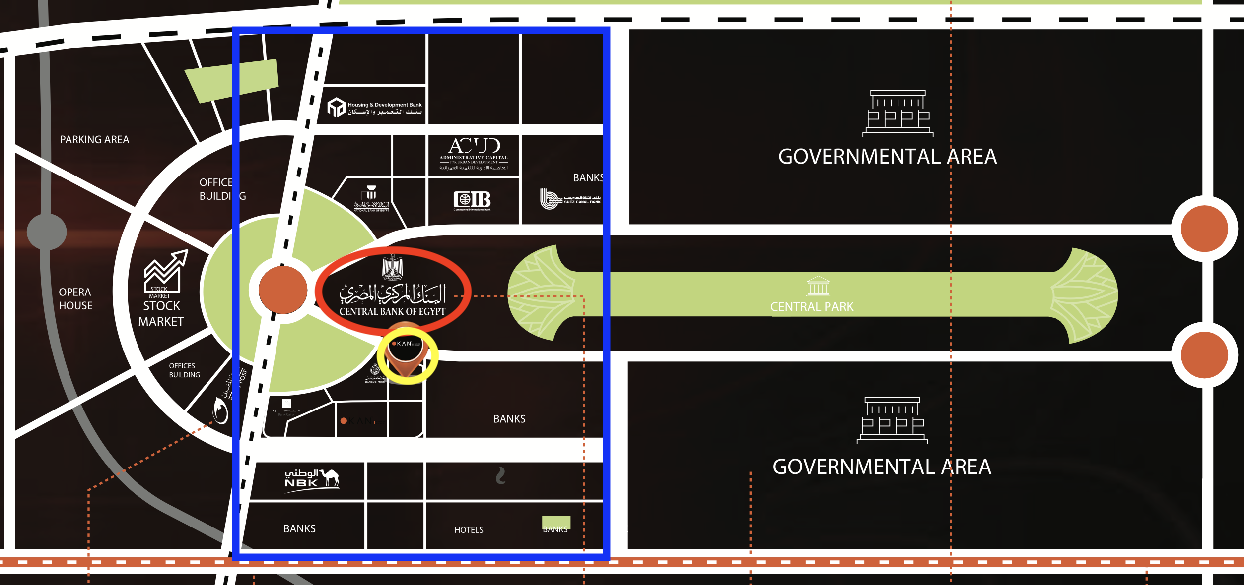 こちらの地図は、エジプト新首都の中央エリアを示したものです。