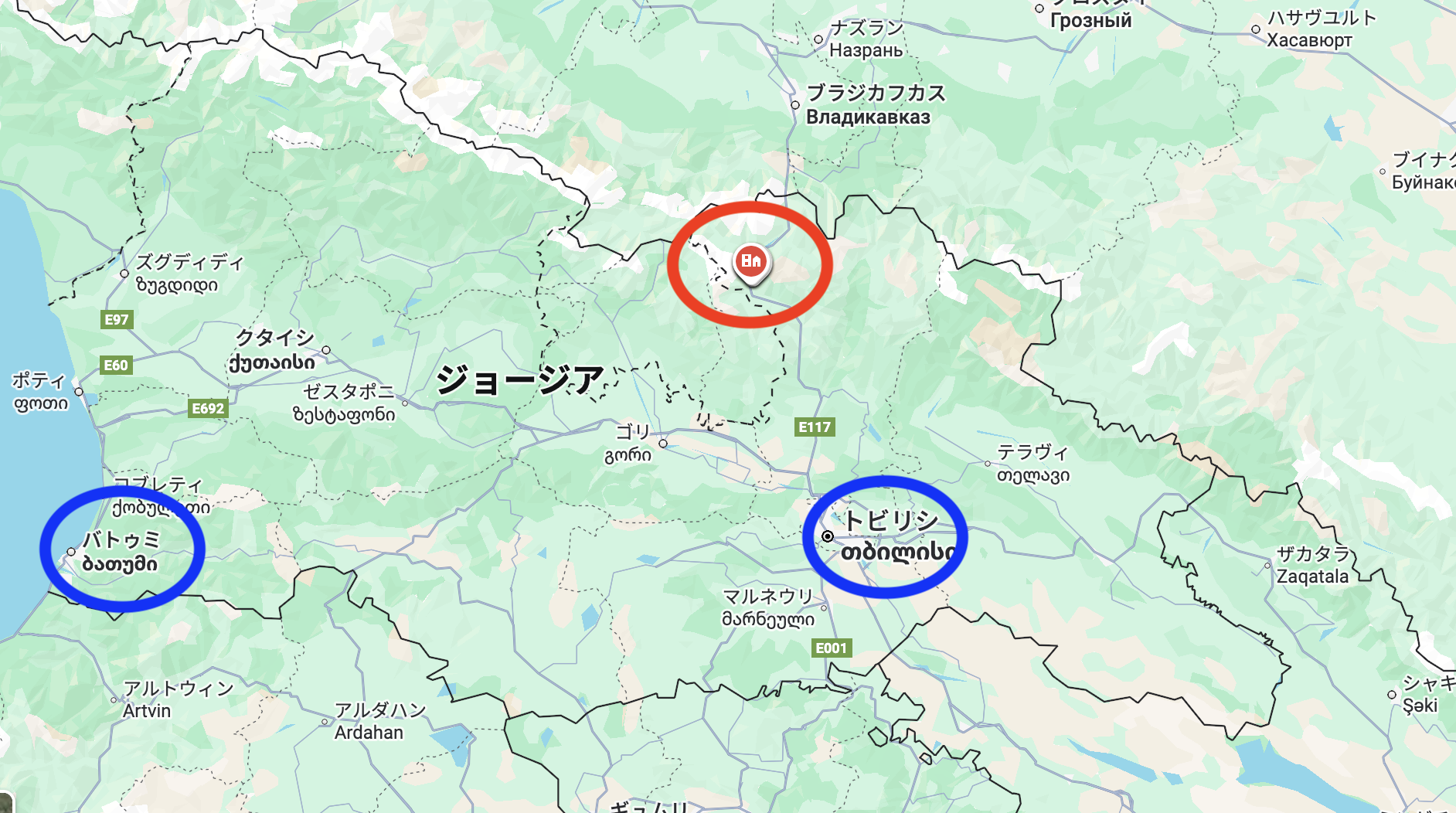 ジョージアの首都トビリシから、車で約2時間30分ほど北上した場所に位置しています。