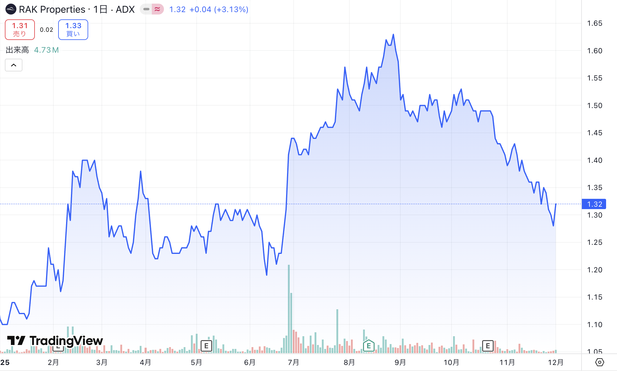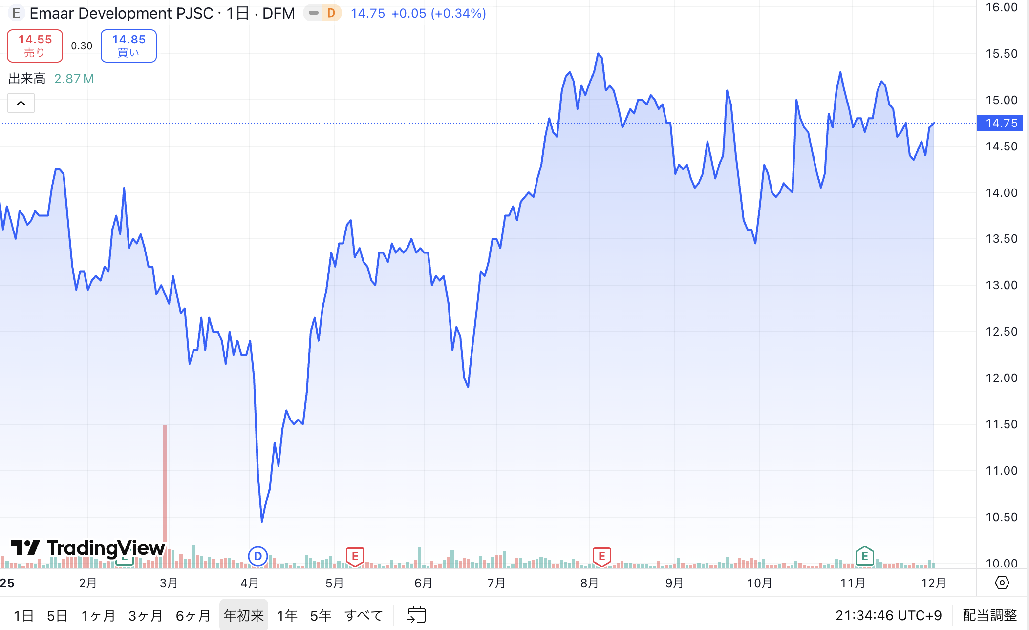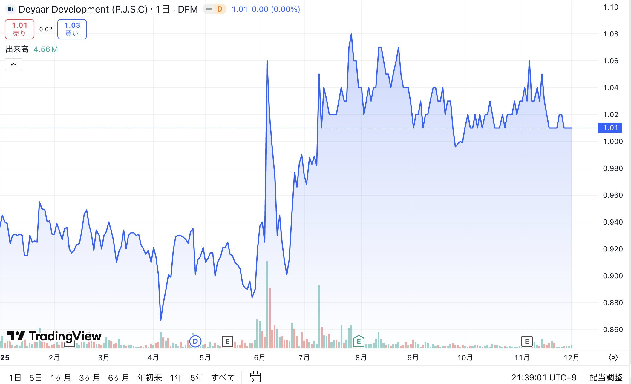 本日は、Emaarに加えて、他の主要開発会社の株価もあわせてチェックしていきたいと思います。複数の企業の動きを並べて見ることで、より立体的に現在のドバイ不動産市場の温度感が見えてきます。