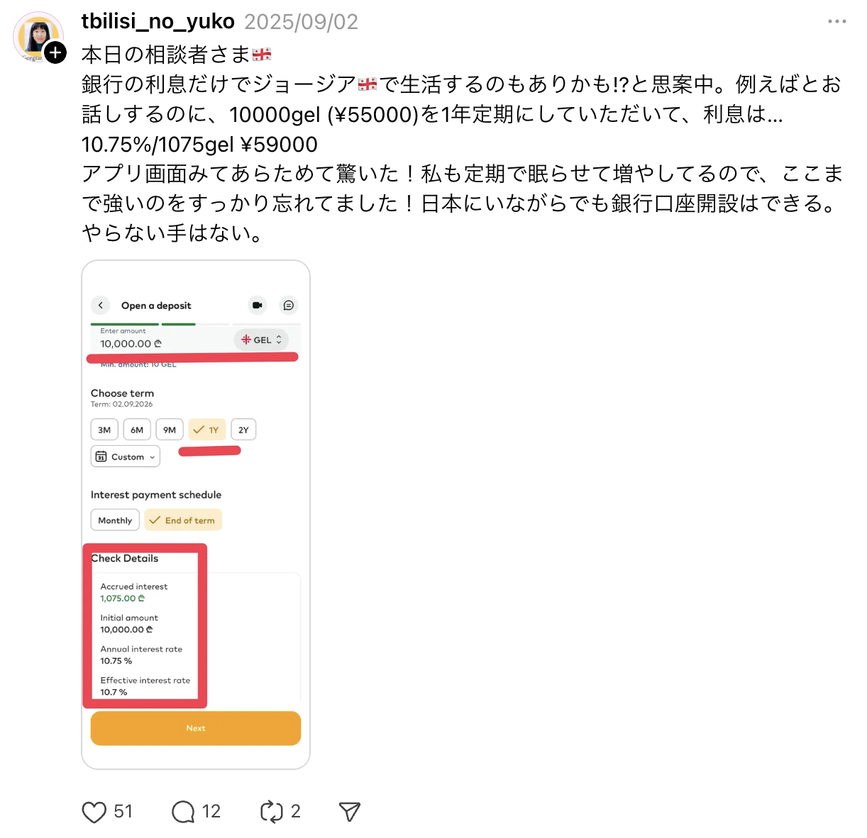 ジョージアの定期預金金利は??